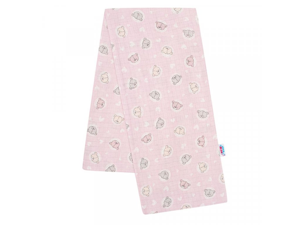 Růžová bavlněná plenka s malými medvídky o rozměrech cca 60x80 cm ze 100% bavlny je vhodná pro každé miminko obzvlášť pro holčičku a hodí se do každého kočárku, postýlky nebo například při kojení. Barevné provedení může být tmavší (světlejší) než je vyznačeno na obrázku.