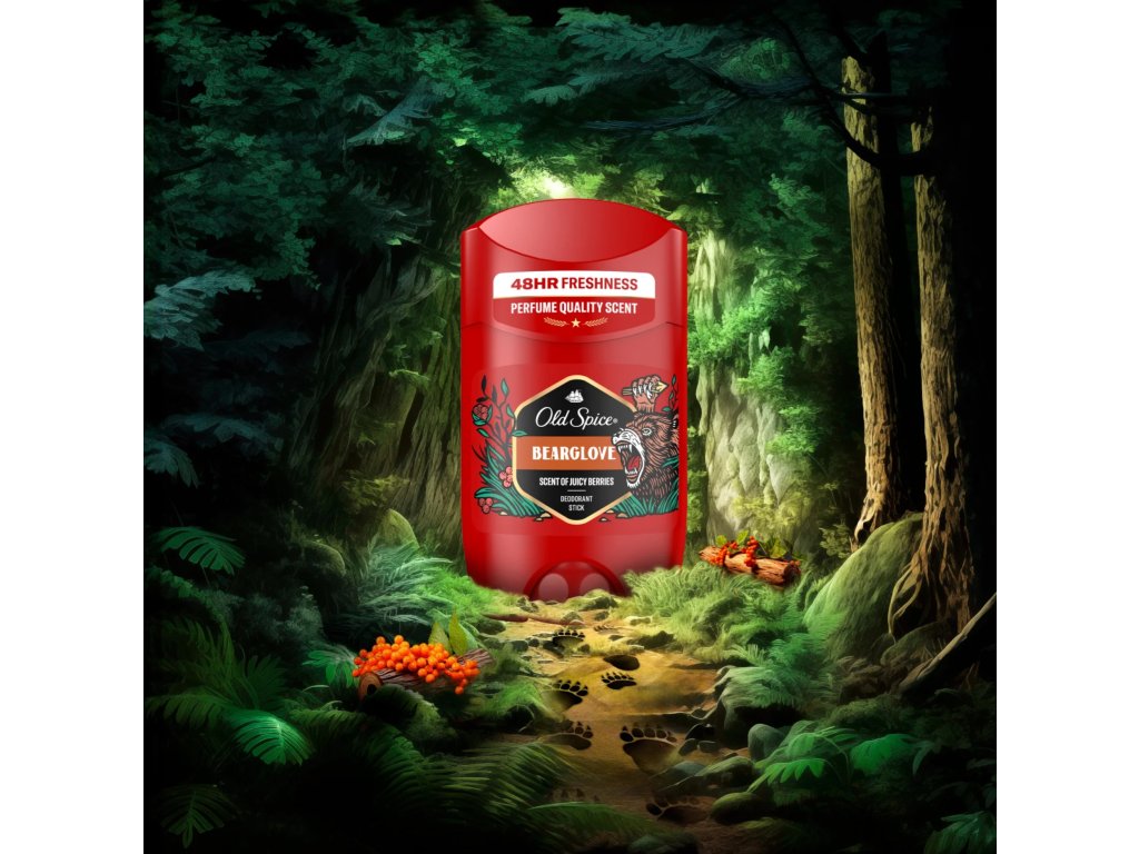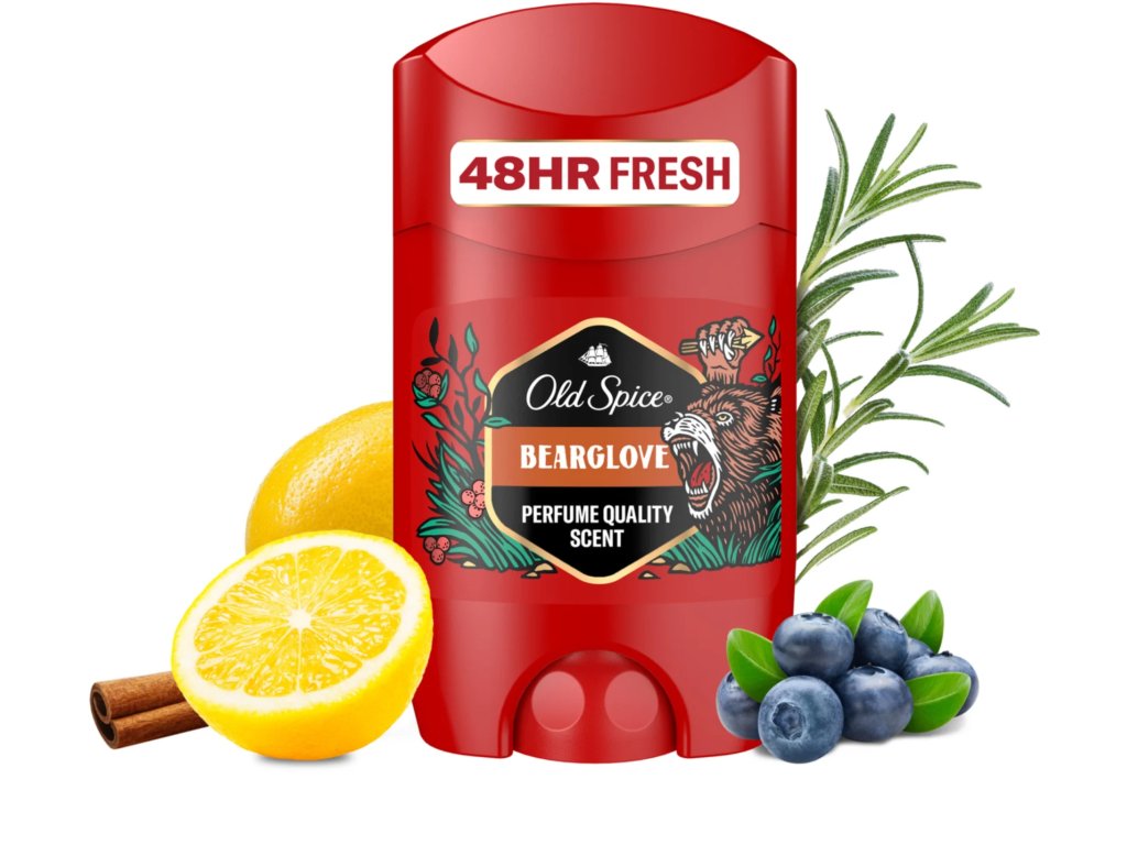 Účinný tuhý deodorant Old Spice Bearglove přináší podmanivou vůni citrusu, dřeva a koření pro opravdové muže, která ve vás probudí šelmu a podmaní si vaše okolí! Nezklame vás v boji s tělesným zápachem a vlhkostí v podpaží, kterou redukuje. Díky technologii postupného uvolňování bude vaše tělo vonět skvěle po celý den. Praktickou velikost a snadné použití deodorantu oceníte i při cestování. Snadné použití deodorantu pouze otočným kolečkem.