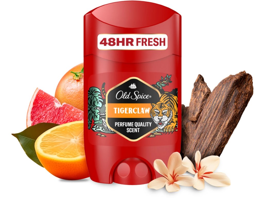 Old Spice Tigerclaw má povzbuzující vůni, která zvládne přilákat pozornost rozvášněného davu, krásných žen. Tento deodorant Old Spice zvýší vaši mužnost. Je to deodorant pro muže, kteří vědí jak krásně vonět a chtějí se cítit sebevědomě v každé situaci. Old Spice přináší širokou nabídku vůní pro muže, kteří žijí dynamicky a nekonvenčně. Zjistěte jak se jednou provždy zbavit tělesného pachu. Vyberte si osobitou mužnou vůni, která nabíjí energií a osvěžuje. Deodorant Old Spice je jako brnění, které nezanechává žádné bílé stopy a žluté skvrny. Působí celý den, protože své tělo potřebujete také celý den – aspoň většinou.