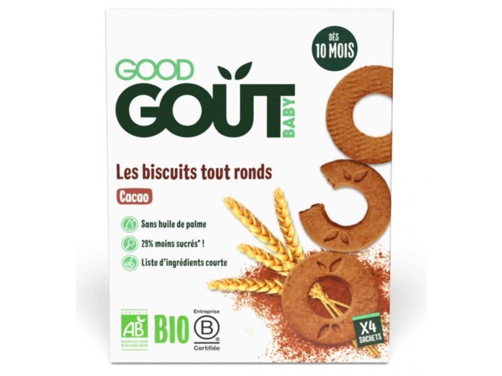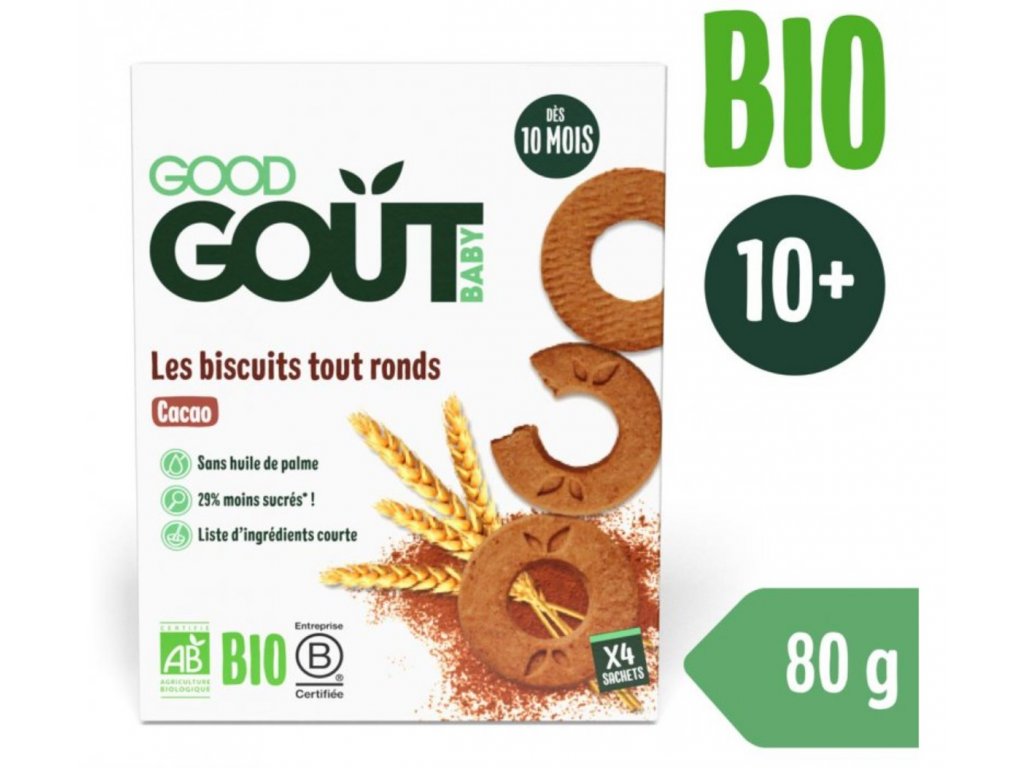 Po úspěchu našich vanilkových koleček přicházíme s jejich kakaovými sourozenci. Díky tvaru prstence, který lze snadno uchopit, se tyto sušenky staly neoddělitelnou součástí svačinek malých mlsounků. Jejich chuťové pohárky odteď může těšit i nový recept plný čistého organického kakaa. Sušenky s příchutí kakaa jsou rozděleny do 4 sáčků (4 x 20 g), které se krásně vejdou do kabelky a lehce se můžou stát i skvělou lehkou dobrůtkou do baťůžků na dětské výlety..