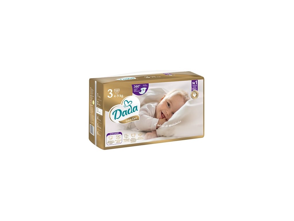Plenky mají žlutý indikátor vlhkosti, který zmodrá když je plenka plná a je potřeba ji vyměnit. V porovnání s plenkami Dada Extra care (starší verze) jsou 2x rychleji suché, což zajistí okamžitý komfort pokožky. Super absorpční kanálky = rovnoměrná absorpce tekutiny. Díky měkkému a jemnému povrchu plenky s vitamínem E a prodyšných materiálů se miminko bude cítit jako v bavlnce. Při výrobě plenky byly nově použity 4 technologie a to: technologie SeconDry - okamžitá suchost, technologie Double Lock Layer - inovativní absorpční vložka pro spolehlivou ochranu proti vlhkosti, technologie Wee Zones - efektivní odvod vlhkosti pro dívky i chlapce a technologie Climaflex - účinný odvod vlhkosti a tepla, aby se zabránilo podráždění. Pro ještě lepší ochranu a hygienu mají plenky vzadu a vepředu kapsy, které spolu s volánky proti protečení poskytují 360° ochranu proti protečení. Produkt je bez parfemace, aby se minimalizovalo riziko alergické reakce (neobsahuje alergeny ze seznamu 26 potenciálních alergenů) a je vyroben bez použití molekulárního chloru. Ochrana mikrobiomu - plenky pomáhají udržovat normální fyziologickou flóru pokožky, díky čemuž bude stále zdravá a v dobré kondici. Výrobek je vytvořen v továrnách využívajících elektřinu z obnovitelných zdrojů. Celulóza použitá pro výrobu byla získána z udržitelného lesního hospodářství spravovaného odpovědně a z kontrolovaných zdrojů (certifikát PEFC).