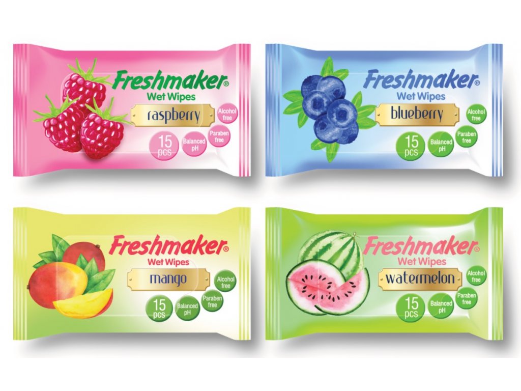 Vlhčené ubrousky v malinkém balení vhodném do kapsy, či tašky s příjemnou ovocnou vůní čistí, změkčují a zvlhčují pokožku. Neobsahují alkohol, ani parabeny. Zachovávají vhodnou hladinu pH.