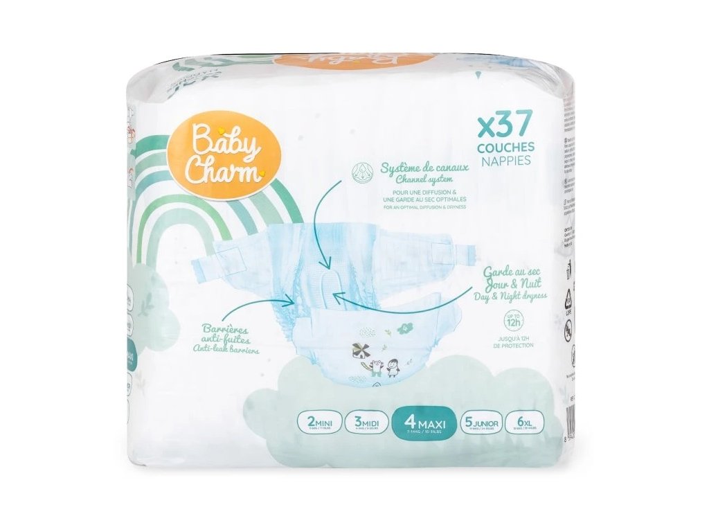 Nebělené (bez chlóru) plenky Baby Charm Super Dry Flex ve velikosti 4 Maxi vyhovují i těm nejcitlivějším dětem. Citlivá pokožka si zaslouží speciální péči bez dráždivých látek, a proto v těchto plenkách nenajdete chlór ani parfém. Jenom tak si můžete být jistá, že vašemu miláčkovi zajistíte to největší pohodlí, aniž by se objevila nepříjemná alergická reakce. Plenky Baby Charm díky speciálním materiálům eliminují opruzeniny a zajišťují celodenní úsměv na tváři maminky i mrňouska. A protože děti milují veselé obrázky, určitě je potěší i krásný potisk z pohádky ,, Kocour v botách''. Velikost 4 je vhodná pro děti od 7 do 14 kg.