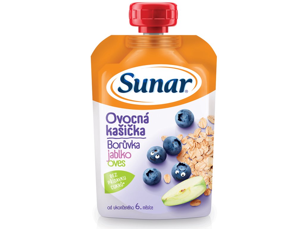 Sunar kašička je kombinací šťavnatého ovoce a cereálií. Zasytí tak více než čistě ovocné kapsičky a je ideální i při zavádění lepku do jídelníčku dítěte.