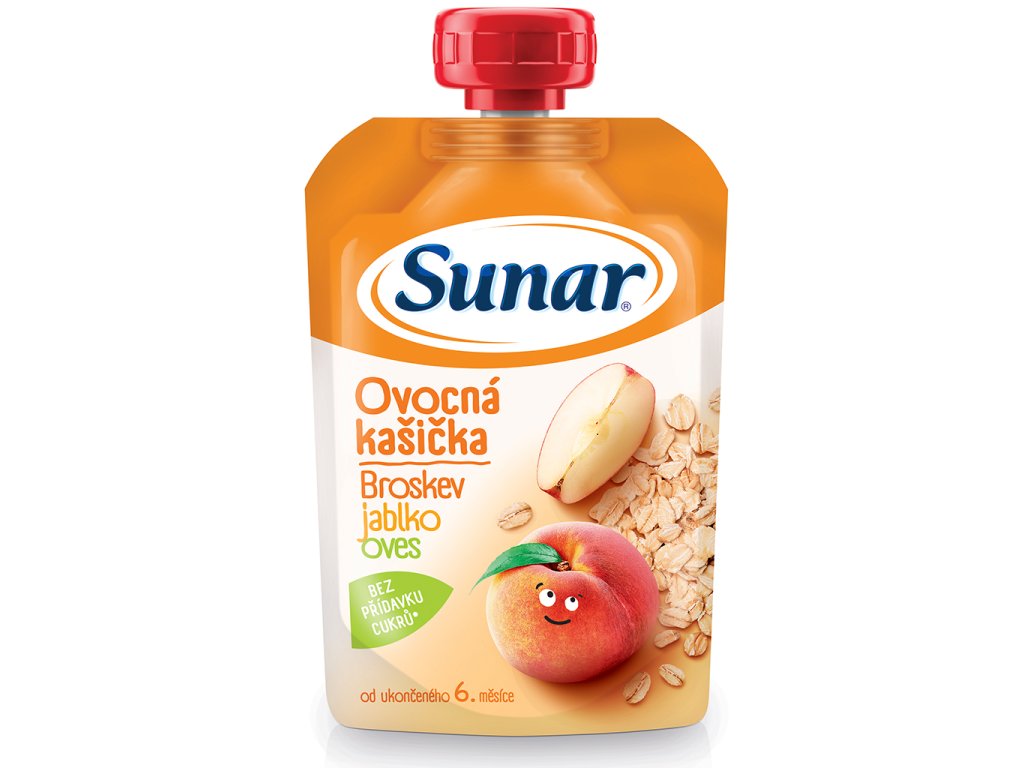 Sunar kašička je kombinací šťavnatého ovoce a cereálií. Zasytí tak více než čistě ovocné kapsičky a je ideální i při zavádění lepku do jídelníčku dítěte.