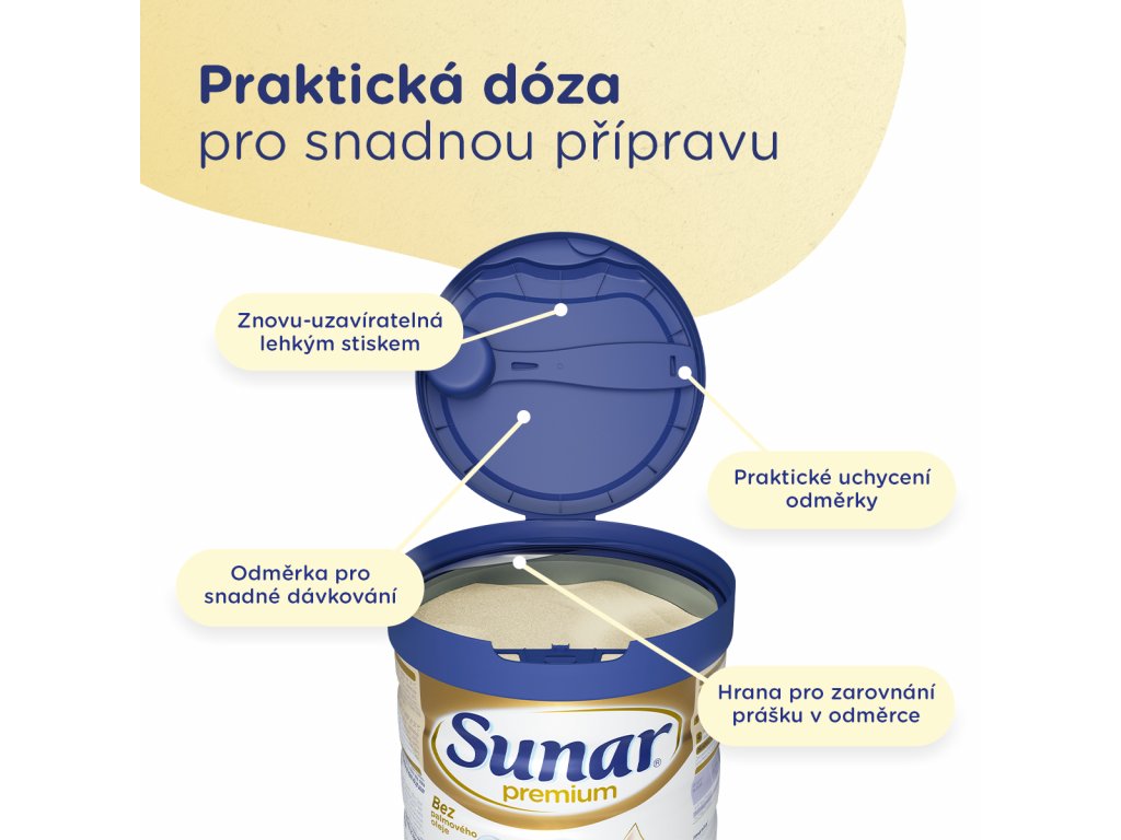 Výhody praktického balení: Dávkování Sunaru Premium zvládnete hravě s jedinečnou dózou.