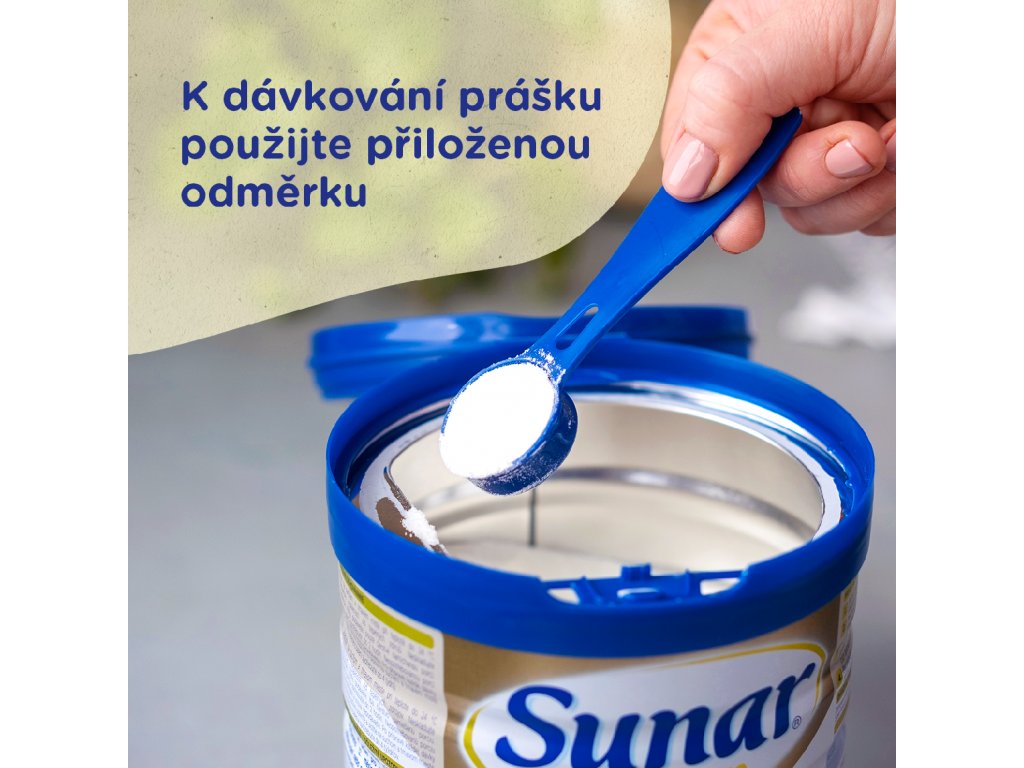 3. Smíchejte se Sunarem (Naplňte odměrku vrchovatě práškem, přebytek zarovnejte ostřím nože a vsypte do lahve požadovaný počet odměrek (viz dávkovací tabulka). Dobře zavřete a důkladně protřepejte, až se prášek rozpustí. Používejte vždy pouze přiloženou odměrku.)