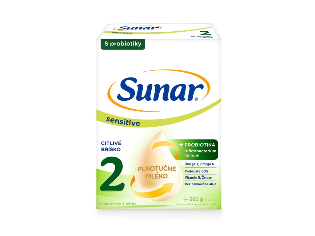 Sunar Sensitive 2 je pokračovací kojenecká mléčná výživa s probiotiky pro kojence od ukončeného 6. měsíce, určena pro citlivé bříško vašeho děťátka. Jedná se o unikátní recepturu podle vzoru mateřského mléka s obsahem prebiotik (Oligosacharidy GOS) a probiotik (Bifidobacterium longum).