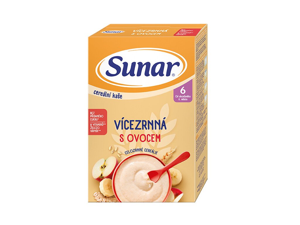 Sunar cereální vícezrnná kaše s ovocem je určena pro děti od ukončeného 6. měsíce. Je ideální coby první kaše s obsahem lepku při zavedení smíšené stravy. Celozrnné cereálie přispívají k pestrému jídelníčku a zavedení zdravých stravovacích návyků. Navíc obsahuje 0 % přidaného cukru. Obsahuje důležité vitaminy a minerální látky pro správný růst a vývoj. Bez konzervačních látek a barviv.