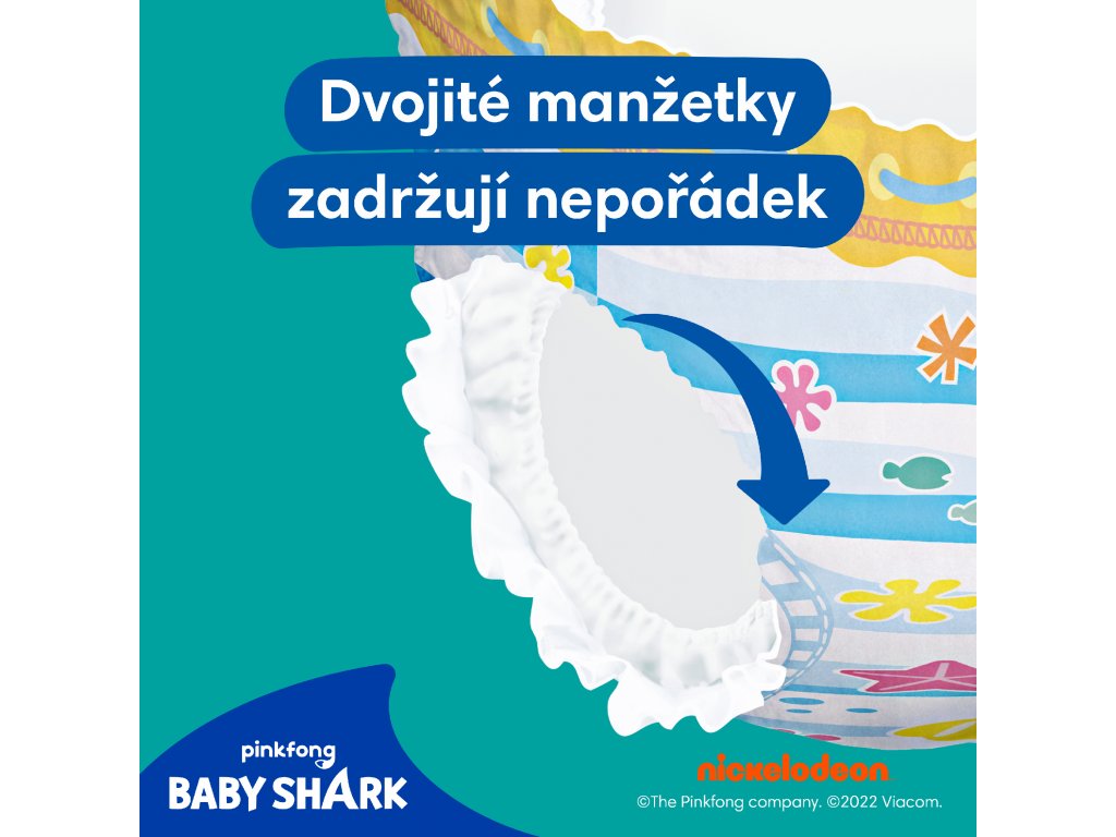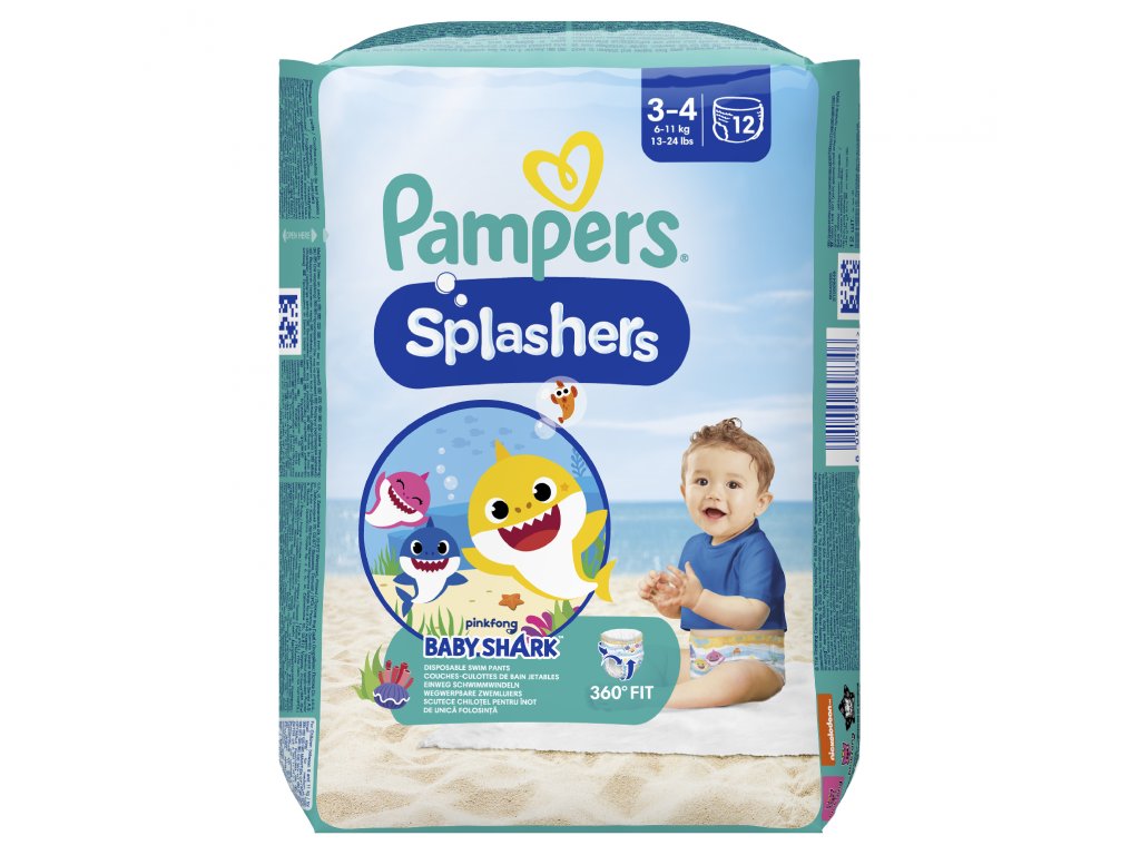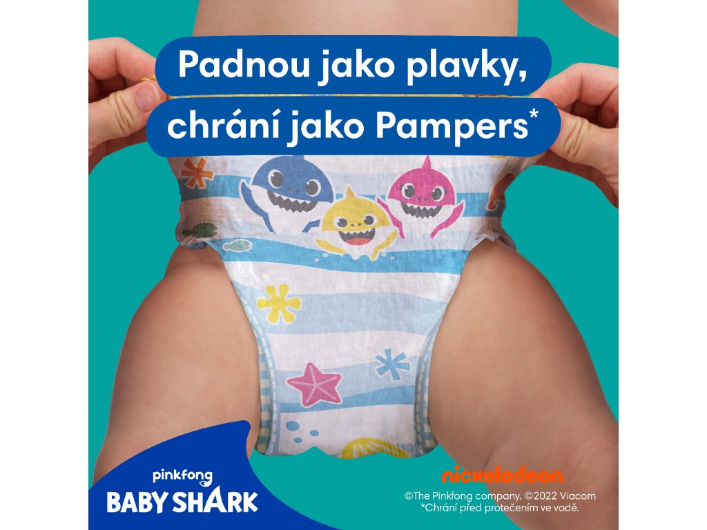 Jednorázové plenkové kalhotky do vody Pampers Splashers jsou navrženy pro zábavu v bazénu, na pláži i v akvaparku. Na rozdíl od běžných plenek ve vodě nenasáknou, takže pohodlně padnou mokré i suché. Mají dvojité lemy proti protečení, které poskytují ve vodě spolehlivou ochranu, díky nim plenkové kalhotky pohodlně padnou kolem nožiček vašeho dítěte a pomohou zadržet nečistoty. Po celém obvodu mají pružný pas, takže padnou jako plavky a snadno se oblékají i svlékají dokonce i za mokra. Boky plenek do vody se dají snadno roztrhnout pro snadné svlékání bez nepořádku. Jsou potištěné oblíbenými hrdiny Baby Shark. Díky Pampers Splashers si v bazénu užijete s miminkem ještě víc legrace.